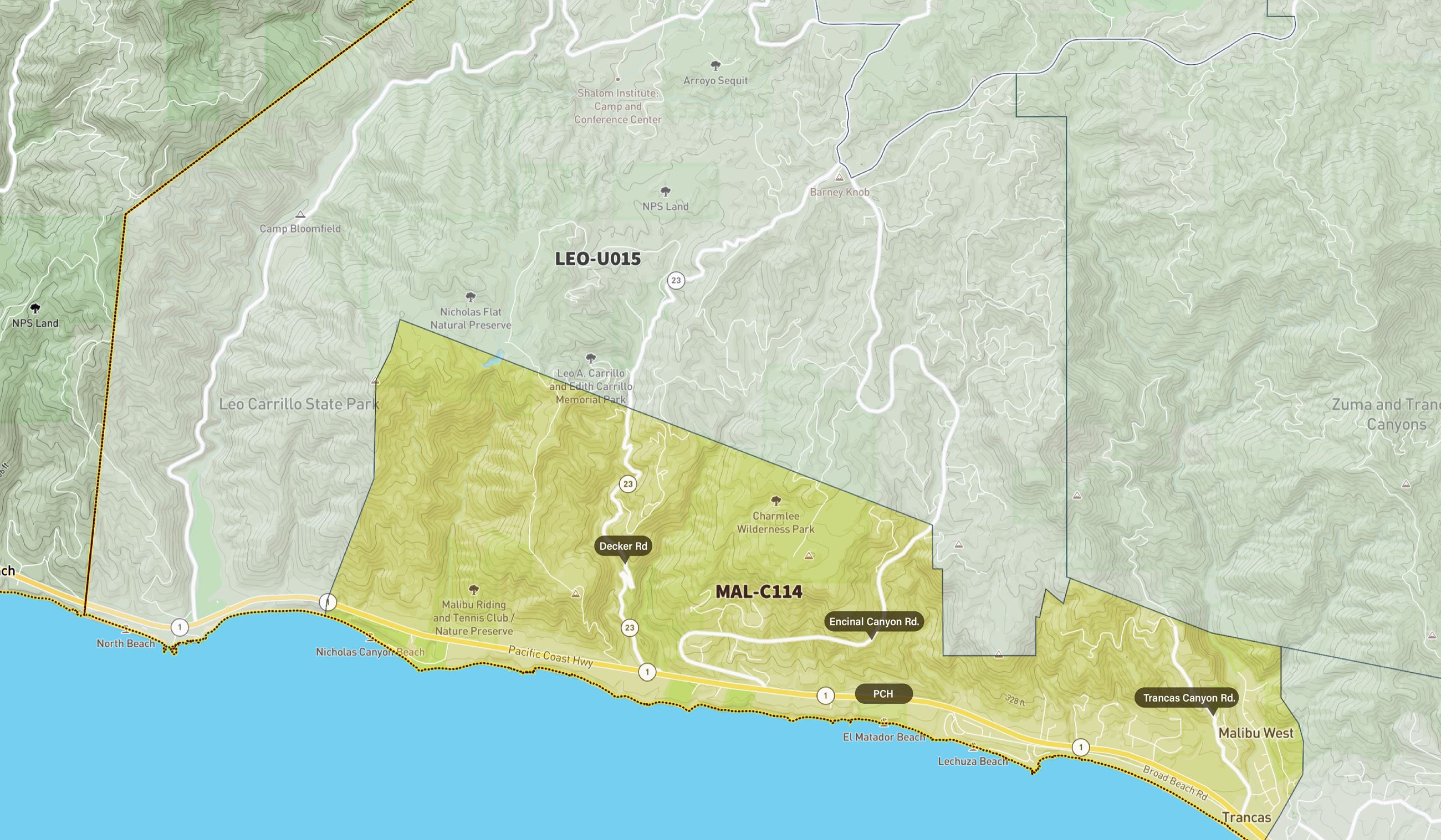 Los Angeles County adopted new official disaster response and evacuation zones in November 2022. Malibu’s zones are now numbered MAL-C111, MAL-C112, MAL-C113 and MAL-C114. The new zones for Malibu are the same as the City’s previous Evacuation Zones (11-14) which were adopted in February 2020 as part of the City’s official Mass Evacuation Plan.